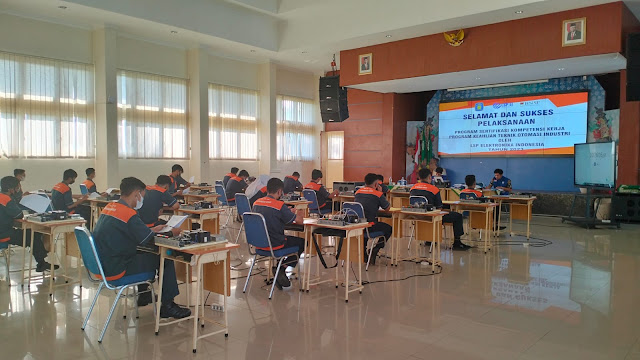 Kegiatan ini diikuti oleh 20 peserta dari kelas 12 TOI dengan penguji dari Badan LSP-EI BNSP. Materi nya adalah Ujian Tulis dan Ujian Praktik Pemrograman